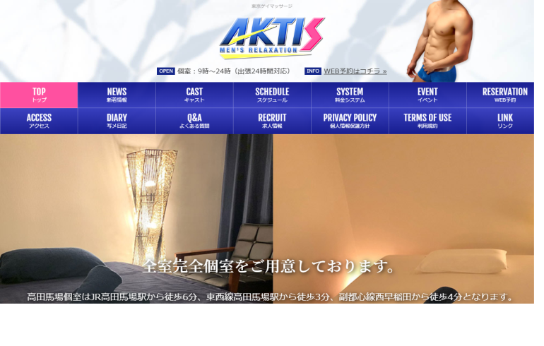 AKTIS - 0 東京 説明 東京・高田馬場と品川を拠点とするゲイ向けオイルマッサージ専門店。完全個室と出張対応。多様なキャストが在籍し指名予約が可能。WEB予約付き。 アクセス 高田馬場駅徒歩6分 / 品川駅徒歩7分 所喢地 東京都(高田馬場・品川) 営業時間 9:00〜24:00(出張は24時間対応) 予約・問い合わせ WEB予約 支払い方法 要確認(公式サイトへ) 料金帯 60分 ¥10,000〜 タグ 細マッチョ イケメン 前立腺マッサージ 4ハンドマッサージ タントラマッサージ ゲイマッサージ オイルマッサージ 出張マッサージ 完全個室 指名可 WEB予約 ジャニ系 公式サイト 総合得点 - 0 評価 - 口コミ 0 まだクチコミが投稿されていません。 クチコミを書く AKTIS返信をキャンセルする。 ニックネーム必須 評価必須 星の数をお選びください クチコミのタイトル必須 クチコミ内容必須 写真を添付 対応ファイル形式:JPEG / PNG / GIF (1枚2MBまで・最大6枚) ※人物・個人情報が写った写真は投稿できません。 ※投稿内容は確認後に掲載されます。 クチコミ投稿の注意点 みなさまが安心して利用できるよう、思いやりのあるご投稿をお願いいたします。 ・本口コミは実際に利用した体験に基づいてご投稿ください ・個人の感想としての表現でご記載ください(断定的な表現はお控えください) ・誹謗中傷・名誉毀損にあたる内容の投稿は禁止しています ・事実と異なる内容や虚偽の情報の投稿は禁止しています ・特定の個人(スタッフ・利用者等)を特定できる情報の記載は禁止しています ・過度に性的・露骨な表現はお控えください ・違法行為やそれを助長する内容の投稿は禁止しています ・他サイトやSNS等からの無断転載・コピー投稿は禁止です ・宣伝・勧誘・営業目的の投稿は禁止しています ・当サイトの判断により、不適切な投稿は削除または修正する場合があります ・投稿内容に関して発生したトラブルについて、当サイトは責任を負いかねます